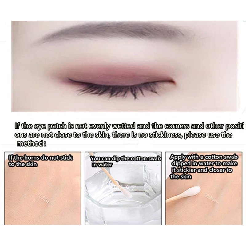 - Note: Water must be sprayed on the surface of this product to make it stick to the eyelids. Its biggest feature is that it is less visible than ordinary double eyelids