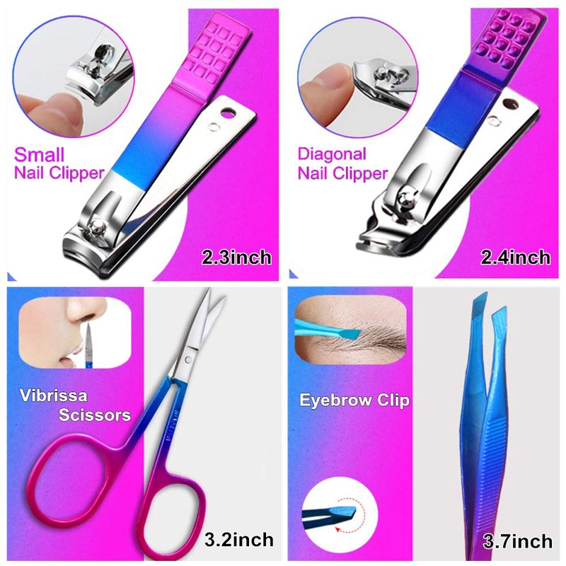- 【THE BEST CHOICE OF GIFTS】Our Stainless Colorful Steel Manicure Kit with a gorgeous suit , it is fashionable、practical and popular with family and friends. It is the best gift for your relatives, friends and wife.