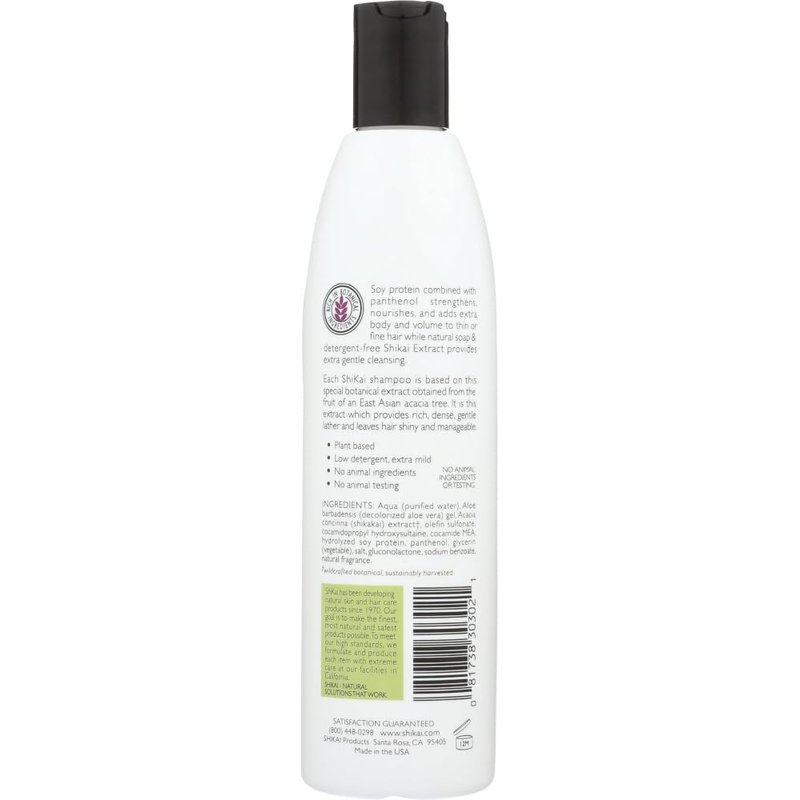 Natural Volumizing Shampoo by Shikai 12 oz Liquid Natural Shampoo Volumizing 12 oz Liquid Product Use to add body texture to fine or thin hair. Soy protein combined with panthenol strengthens nourishes and adds extra body and volume to thin oily fine hair while natural soap detergent-free Shikai Extract provides extra gentle cleansing. Ingredients PURIFIED WATER (AQUA) OLEFIN SULFONATE DECOLORIZED ALOE VERA GEL (ALOE BARBADENSIS) SHIKAKAI EXTRACT (ACACIA CONCINNA) COCAMIDOPROPYL HYDROXYSULTAINE COCAMIDE MEA PANTHENOL GLYCERIN HYDROLYZED SOY PROTEIN SALT (SODIUM CHLORIDE) GLUCONOLACTONE SODIUM BENZOATE CUCUMBER EXTRACT (CUCUMIS SATIVUS) NATURAL FRAGRANCE. WILDCRAFTED BOTANICAL SUSTAINABLY HARVESTED Does Not Contain Soap Detergent Animal Testing. Warnings Keep out of reach of children. As with all dietary supplements consult your healthcare professional before use. See product label for more information.