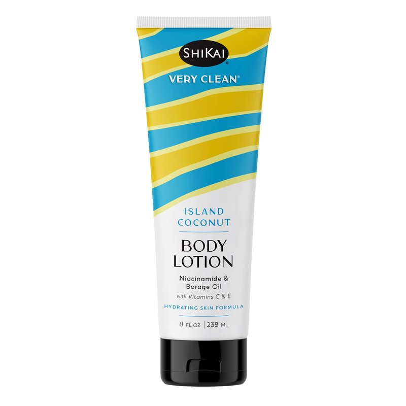 ShiKai Very Clean Body Lotion (Island Coconut, 8 oz) | Hydrating Skin Moisturizer for Dry Skin | With Niacinamide, Borage Oil, and Vitamin C & E