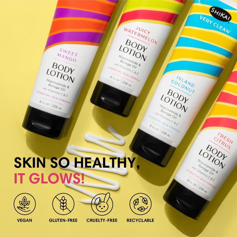 ShiKai Very Clean Body Lotion (Juicy Watermelon, 8 oz) | Hydrating Skin Moisturizer for Dry Skin | With Niacinamide, Borage Oil, and Vitamin C & E