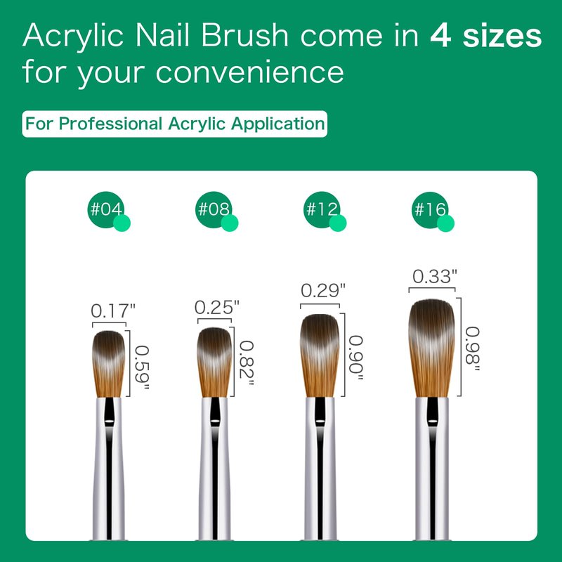 Shine Chance 4Pcs Acrylic Nail Brushes Set, Kolinsky Acrylic Nail Art Brush, Art Design & Polish Mistake Cleaning Manicure Tools for Women Acrylic Application (Size 4 8 12 16)
