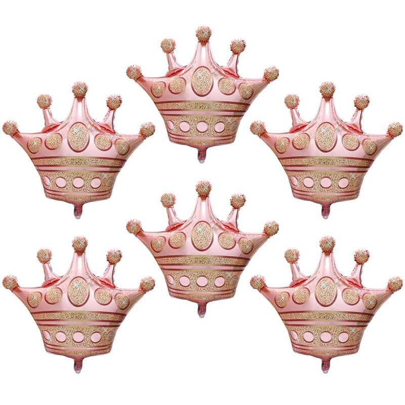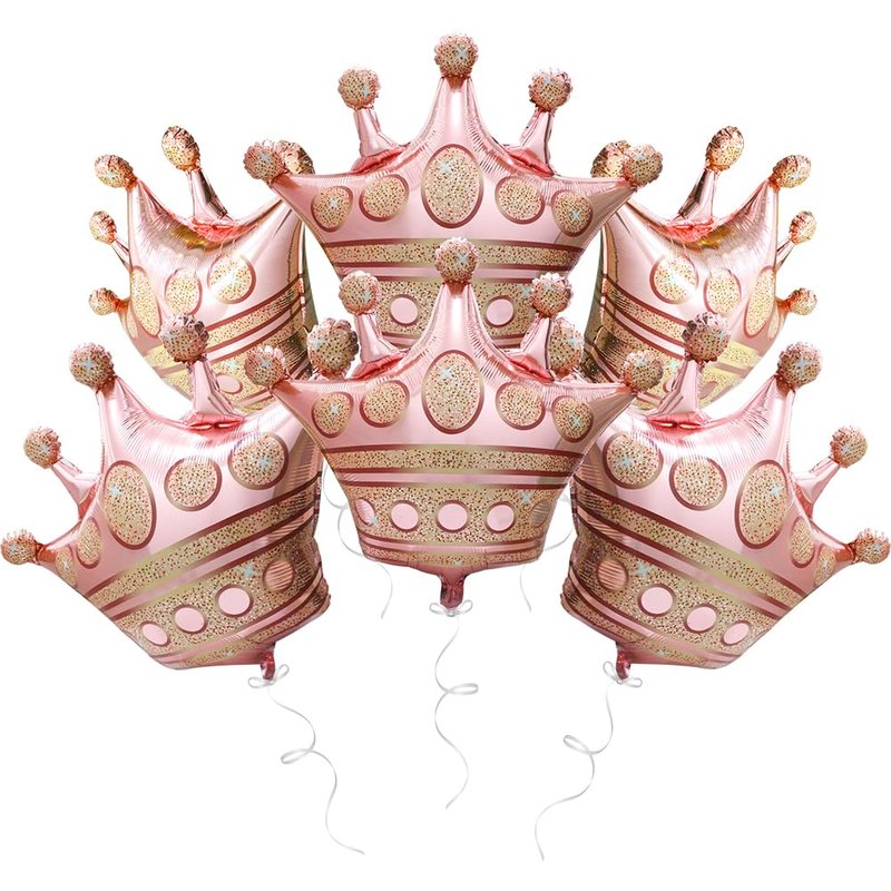 - 6 PACK ROYAL CROWN BALLOONS PINK PRINCE PRINCESS PARTY SUPPLIES★ Our crown aluminum foil balloons, pack of 6, rose gold color, uninflated size is around 29'' (73.7 cm) width * 27.6'' (70 cm) tall (it gets smaller and around 25'' when inflated, see picture for size), double side printed & more thicken than other.