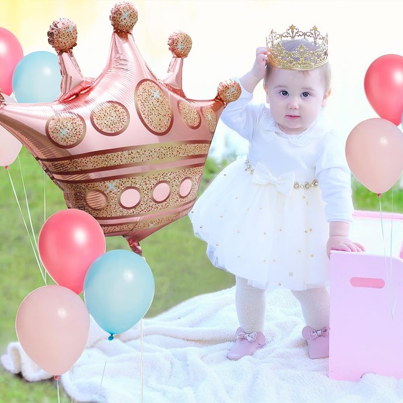 Hokilands Rose Gold Crown Balloons Royal Party Supplies Kit create one new princess prince themed party decoration for adult, kids, boys, girls and all ages.
