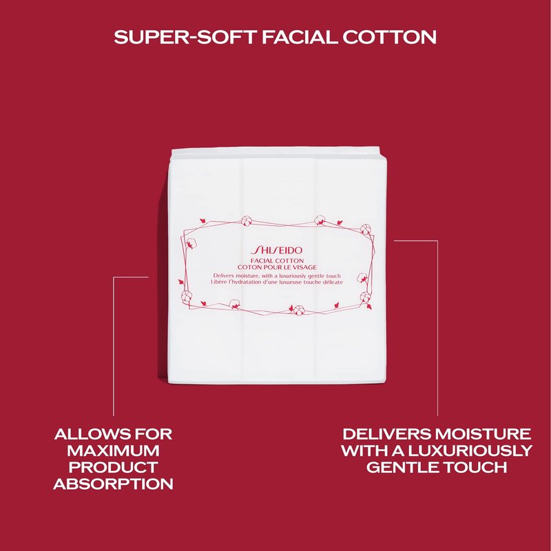 Shiseido Facial Cotton Pads - Includes 165 Squares - for Softener Application & Makeup Removal - 100% Natural, Super Soft