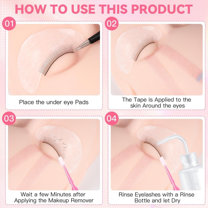 - HOW TO USE: First apply the eye pads under your eyes, secure the eye pads with tape, then apply a small amount of our lash glue remover to your lashes, close your eyes tightly, wait 1-3 minutes and then carefully wipe off and rinse well to make sure there is no residue