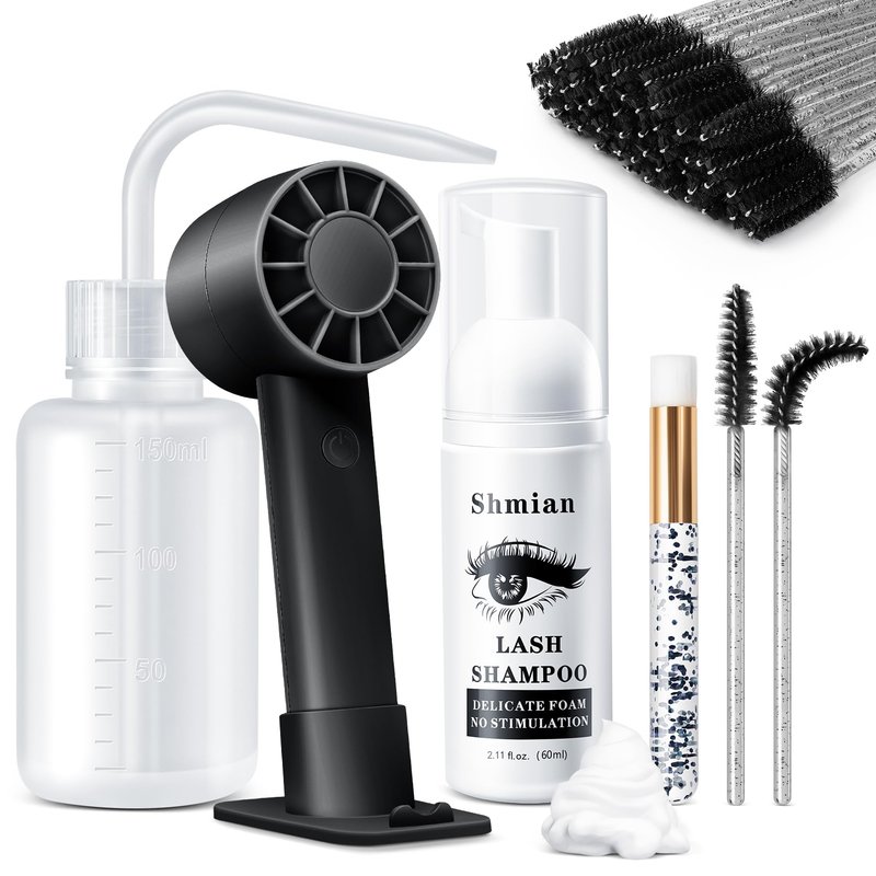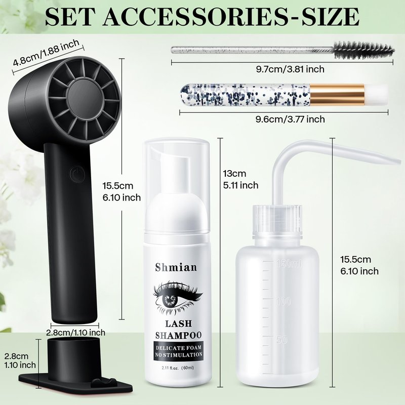 - 【Package Included】Our lash cleaning kit incude 1 pcs rechargeable lash fan,1 pcs 60ml/2.11fl.oz. lash foam cleanser for extensions, 50 pieces eyelash brush,and plastic wash bottle. Comes with a whole set to meet all needs of keeping your lashes perfectly cleansed. Easy to be put into your bag when you're travelling or on business trips,Bring convenience to your beauty anytime and anywhere. Exquisite packaging is also suitable as a Mother's Day gift.