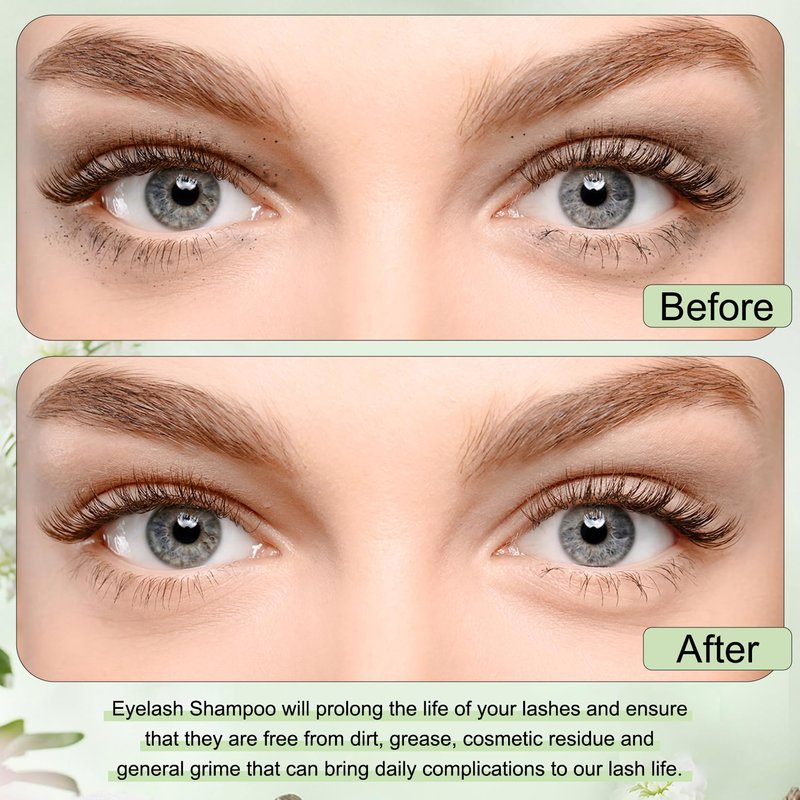 - 【Easy to Use】Apply amount of eyelash extension remover onto the provided cleansing brush, then gently apply the shampoo to the lashes and around the eye area to remove make-up and oil residue. Then Clean thoroughly with water and pat dry and brush lashes with a clean lash wand/brush. Perfect aftercare supplies or kits for your eyelash extensions.