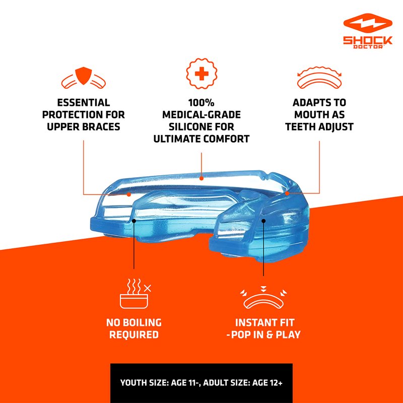 - FULL MOUTH PROTECTION: Shock Doctor Double Braces Mouth Guard has upper and lower teeth protection, ensuring full protection while playing anything from football to baseball