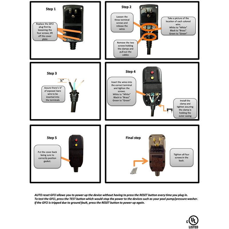 - cUL listed: ShockGuard GFCI Adheres to industry and safety standards; This replacement plug has been rigorously tested and certified by UL, ensuring that it meets or exceeds safety and performance standards.