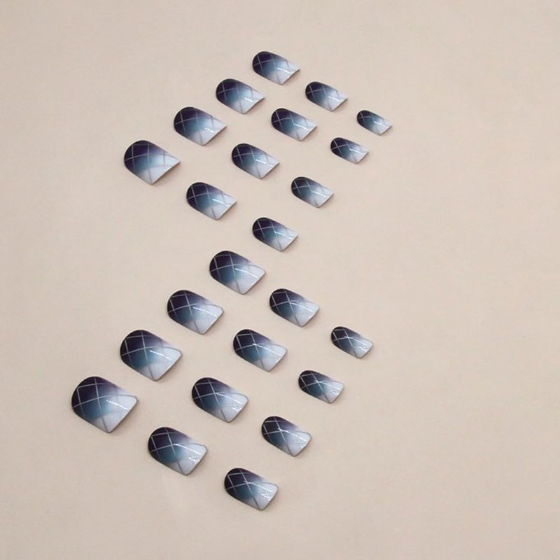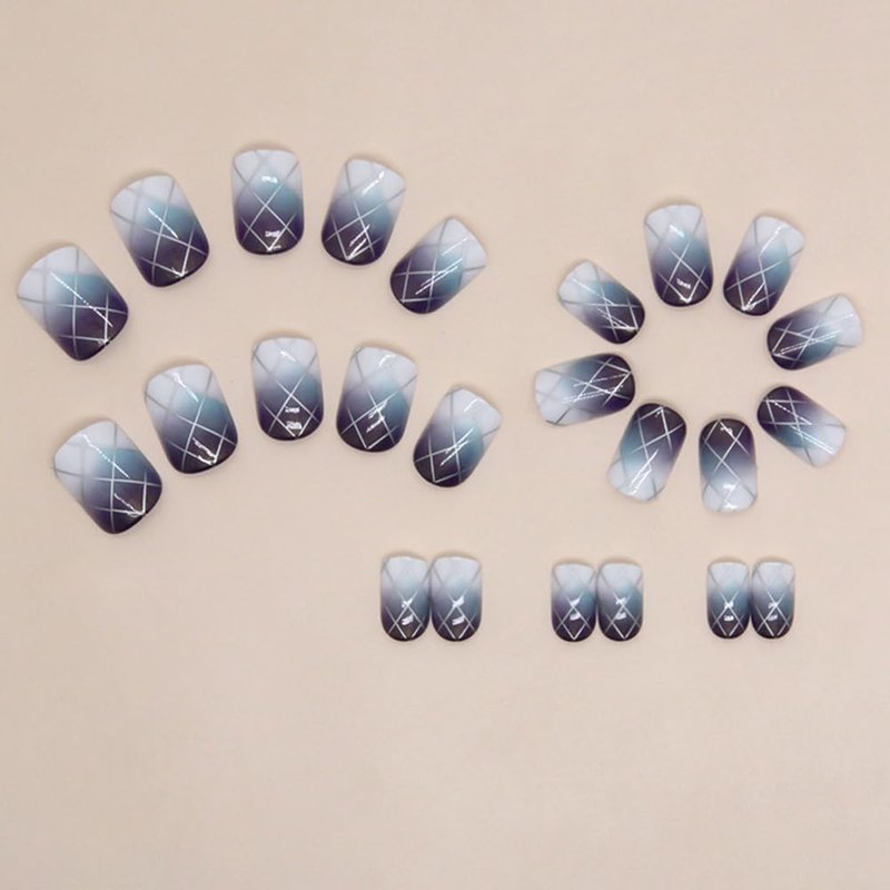 Short Fake Nails, Glue On Nails Short,Short Nails Press on, Press on Nails Short Square Acrylic False Nails with Purple Ombre Plaid Press ons Designs Artificial Nails Stick on Nails for Women 24Pcs