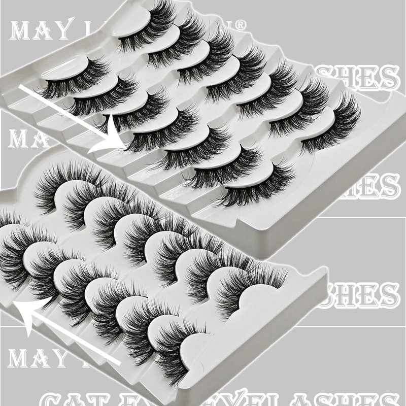 - ð€ã6D Cat Eye VolumeãMayIFindYou fake eyelashes natural look use high-technology Curling technique, what makes fluffy mink lashes have long-lasting and full 6d layered volume. False eyelashes bring you charming distinctive look all the day.