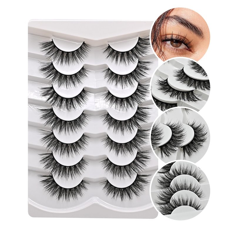 Elevate your makeup game with these high-quality faux mink lashes. This set includes 7 pairs of fluffy, wispy eyelashes that provide a natural, voluminous look. The lightweight lashes are designed for comfort and easy application. With their 6D volume and cat eye style, these lashes will enhance your eyes and give you a glamorous, eye-catching appearance. Get ready to flutter those luscious lashes and turn heads wherever you go. Suitable for all occasions, from casual days to special events. Achieve a stunning, flirty look with this versatile lash set.