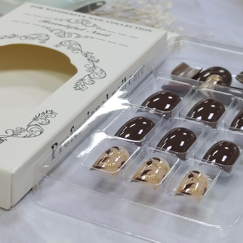 Name: Light Coffee Gold Foil Leaves Fake Nails