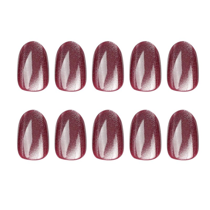 Short Press on Nails, Oval Cat Eye Acrylic Nails Press ons Artificial Fake Nails Wine Red Full Cover False Nails with Designs Glossy Stick on Nails for Women 24 Pcs