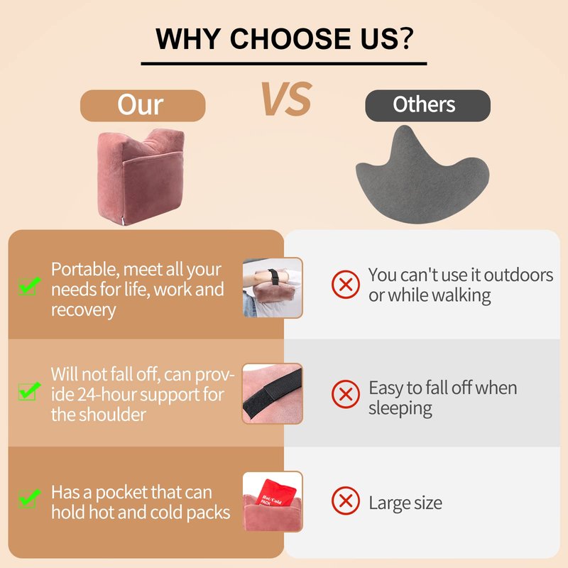 - PORTABLE DESIGN & WON'T FALL OFF - This shoulder surgery pillow meets all your needs for work and post surgery recovery. The support of the rotator cuff pillow can promote the recovery after shoulder fatigue, which is ideal for shoulder recovery after surgery and the velcro sling design is easy to wear and WILL NOT FALL OFF TO PROVIDE 24-HOUR INTIMATE SUPPORT for your shoulder Relieve shoulder pain and LET YOU SLEEP WITH PEACE OF MIND.