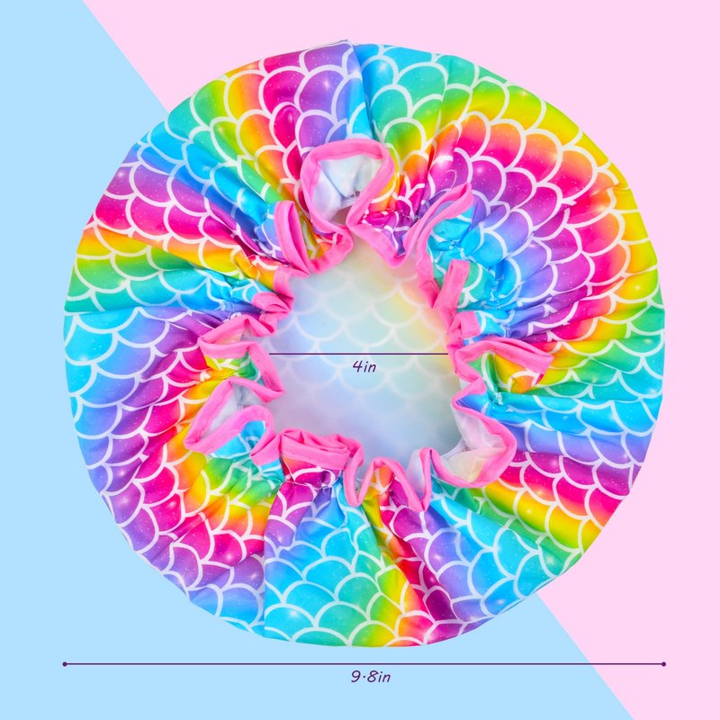 - 【Oversize Kids Shower Cap for More Hair】: Kids Shower Caps with strong elasticity and wear resistance that makes them reusable. The Kids shower cap diameter of the flat spread is 27 cm, and the design of the elastic band is not tight to wear.