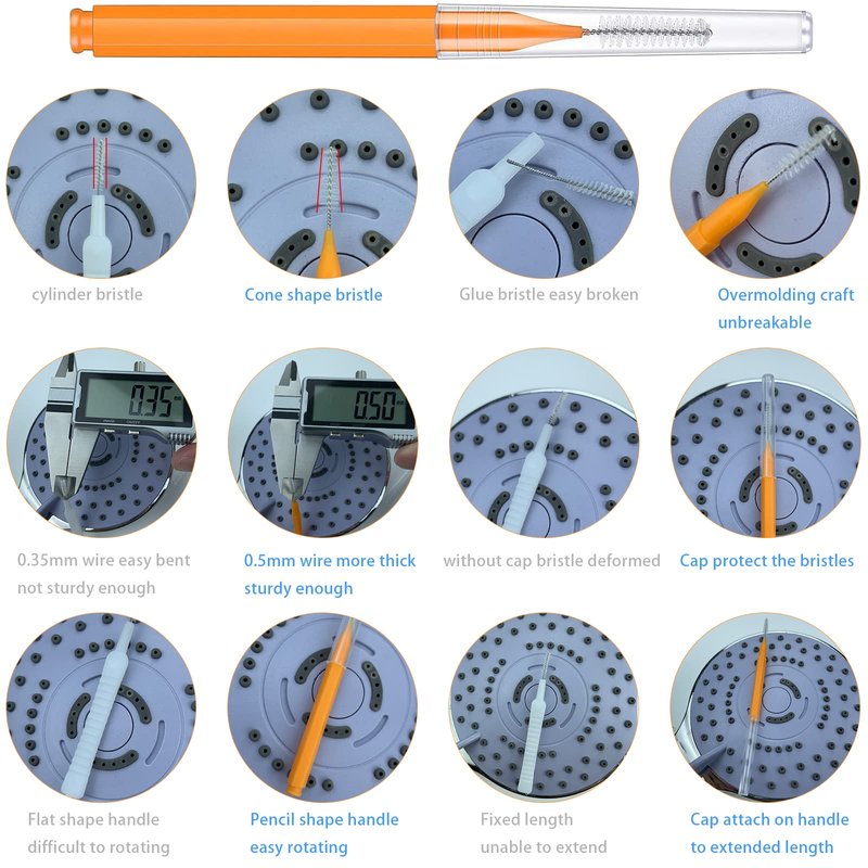 - 【Wide Use】 Perfect to cleaning shower head nozzles, also great to clean coffee machine, car washer nozzles, keyholes, faucet, fan charging port, sinks, drink straws, hummingbird feeders, toilet flushing nozzles, tattoo equipment, mobile phone ports, 3D printer nozzles, welding machine nozzles, wireless earphones and other small holes, seams, gaps, nozzles.