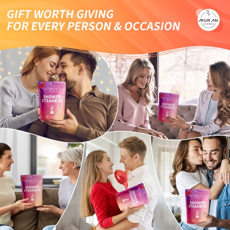- [New upgraded experience, definition of aromatherapy] For the best shower experience, we have researched many shower bombs on the market and upgraded and improved their scent, shape, and size, MURAN shower steamers are naturally fragrant, it allows you to take a slow deep breath and enjoy every moment of relaxation, try this home spa set now.