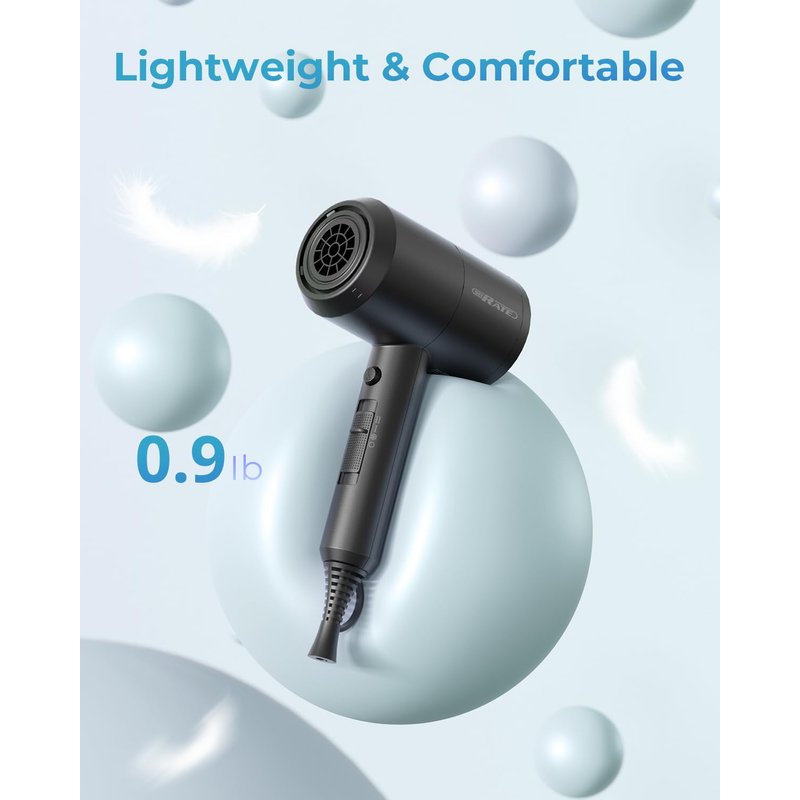SHRATE Lightweight Ionic Hair Dryer with Diffuser - Powerful 1800W Blow Dryer for Fast Drying - Professional Low Noise Mini Hair Dryer for Travel, Gifts, Hair Styling (Black)
