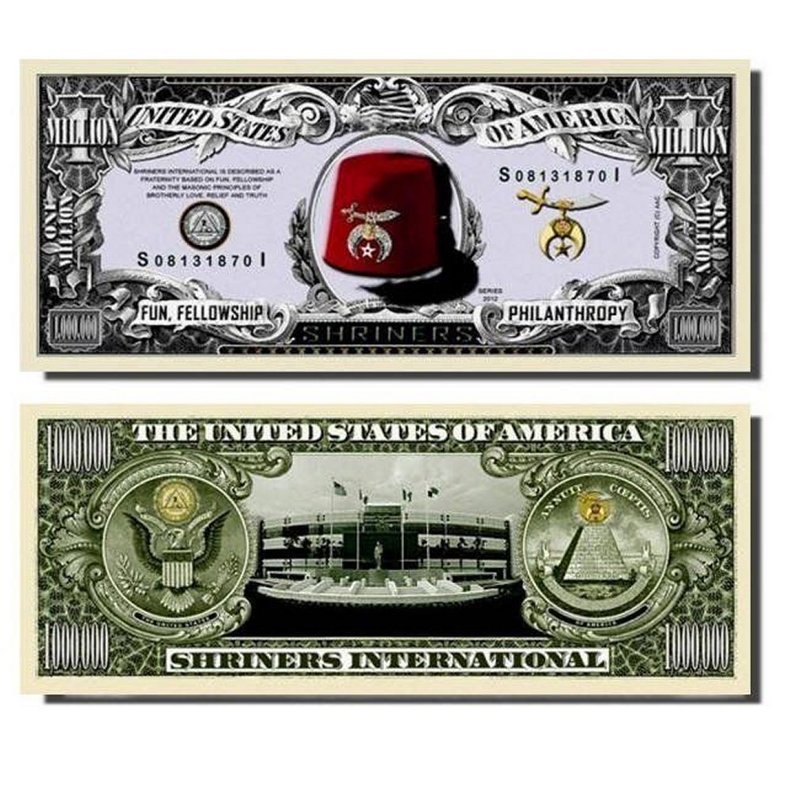 Shriners Million Dollar Bill with Bonus “Thanks a Million” Gift Card Set and Clear Protector