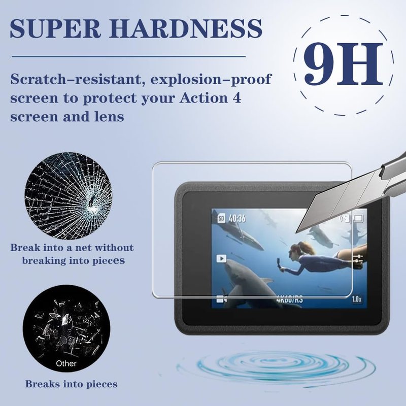 - Designed for :Compatible for DJI Osmo Action 4,Tempered Glass Film (4 pcs) Lens Protector + (2 pcs) LCD Display Film and (1 pcs) Silicone Case Cover Sleeve