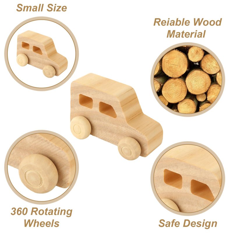 - 【Reliable Quality】Wooden toy cars made of natural wooden material, our unfinished wooden car has a good texture and smooth surface and is safe, skin-friendly, lightweight, and for long periods of use