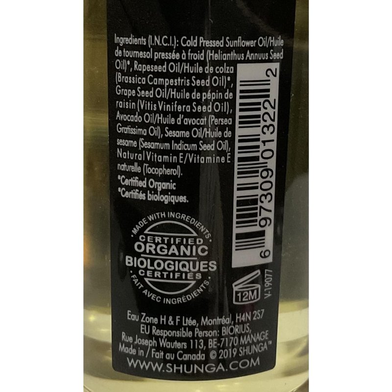 Skład:Cold Pressed Sunflower Oil/Huile de tournesol pressée à froid (Helianthus Annuus Seed Oil)*, Rapeseed Oil/Huile de colza (Brassica Campestris Seed Oil)*, Grape Seed Oil/Huile de pépin de raisin (Vitis Vinifera Seed Oil), Avocado Oil/Huile d'avocat (Persea Gratissima Oil), Sesame Oil/Huile de sesame (Sesamum Indicum Seed Oil), Natural Vitamin E/Vitamine E naturelle (Tocopherol). *Certified Organic/Certifiés biologiques.