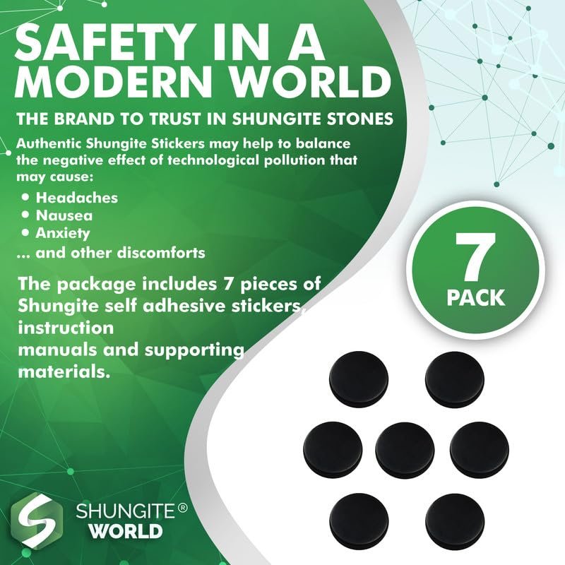Trap Bad Energy Before It Reach You, With Shungite World Cell Phone Protection Are you concerned about emission from devices or electronics? Do you suffer headaches or fatigue and suspect it’s microwaves? Well, instead of necklaces and bracelets, try Shungite cell phone stickers right on your device and catch frequencies before they hit your body! Shungite Rich In Carbon, Just Like Adsorbent Charcoal Filters! Contains Carbon C-60 and Its Amazing Fullerene (Buckyball) Structure! A Rare Stone Formed 2 billion Years Ago, Mined Only in Republic of Karelia. These unique “carbon cages” are safe nano containers that adsorb and encapsulate atoms + ions + molecules. And it does it without blocking Wi-Fi, location, pings or cell signals and won’t affect wireless charging. Stick them to your gaming console, fridge, freezer, air conditioner, TV, microwave, washing machine, dishwasher, printer… and any other electronics that you’re concerned about! Stick them on the back of your device near the antenna (by camera) on phone or phone case. Shungite World Shungite Stickers for Cell Phone, Devices and Electronics. Pack Quantity: 7 pcs Finish: Polished (slick) Sticker Size: 20mm / 0.78” Self-Adhesive Stickers, Non-Magnetic. Instructions Included. To find all our options of Shungite Stones items for cell phone, electronic devises, home, and office to meet your needs go ahead and search us by name Shungite World and you will see variety of items to choose from!
