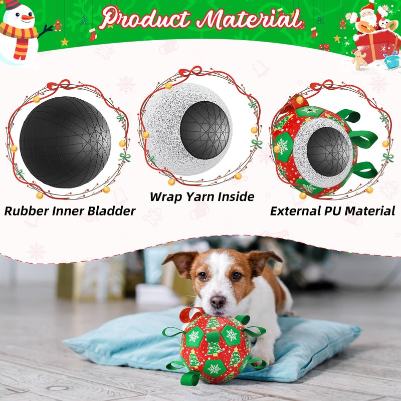 - 【Designed for Interactive Fun】The addition of a sturdy nylon rope on the ball's surface makes it incredibly easy for your dog to grip, pick up, and fetch. Creative Christmas elements design encourages interactive play, helping to strengthen the bond between you and your pet while providing ample exercise.