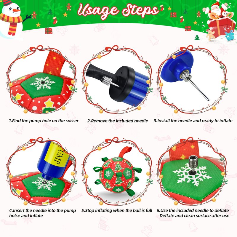 - 【Included Pump & Needle Adapter】Christmas tree and snowflower pattern soccer ball for dog is provided in a deflated state. So ShuRung products package includes a needle point adapter and a pump. The dog soccer ball designed for dogs has a diameter of 6 inches and 8 inches, making it ideal for small to large breeds. It is not recommended for aggressive chewers.