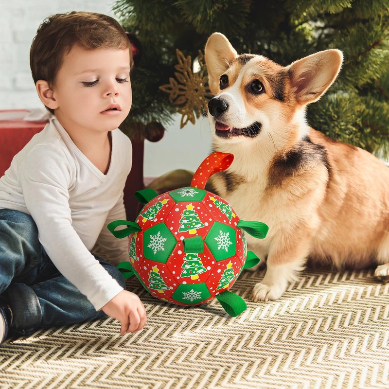Made from high-quality, safe materials, this Christmas dog soccer ball is both durable and safe, ensuring it can handle the rough play from dogs of all sizes. The built-in straps make it easy to engage in interactive games like tug of war, fetch, and more, promoting physical activity and strengthening the bond between you and your pet.