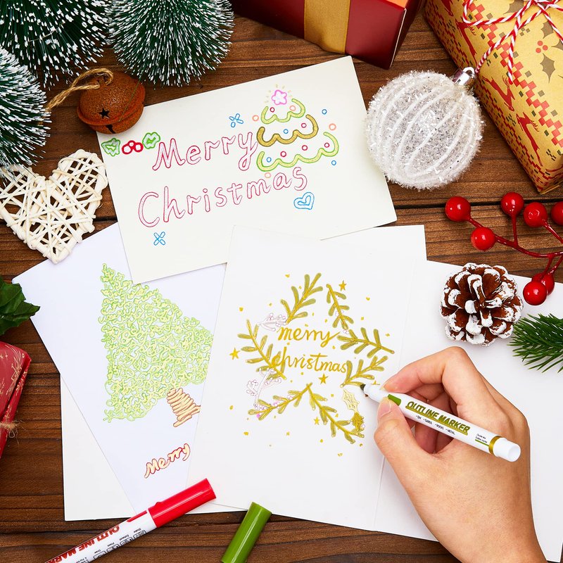 - 【Mutiple Use】: Shuttle Art Outline Markers are perfect for Art, Drawing, Doodling, Card Making, Christmas Greeting Card, and DIY Crafts. And it is suitable for most smooth surfaces like Wood, Canvas, Ceramics, Metal, Stone, and Glass.