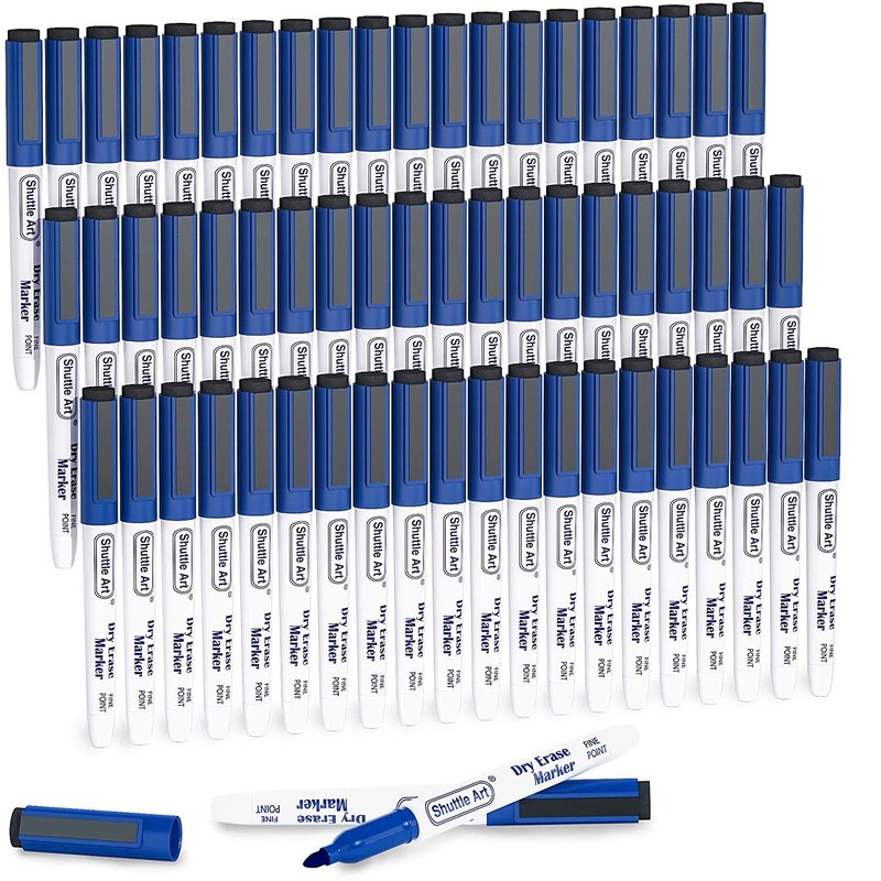 - 60 PACK: Shuttle Art 60 pack blue magnetic dry erase markers, all with blue ink. More dry erase markers with cheaper price! With durable bright ink easily to read markers in the classroom or council chamber.