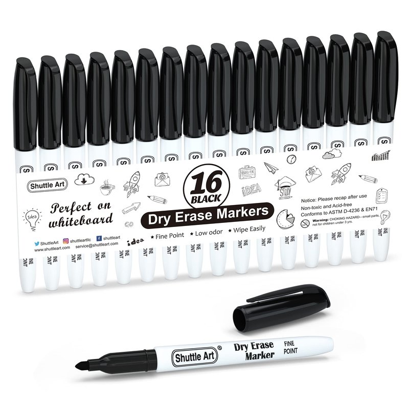 Shuttle Art Dry Erase Markers, 16 Pack Black Whiteboard Markers,Fine Tip Dry Erase Markers for Kids,Perfect for Writing on Whiteboards, Dry-Erase Boards,Mirrors,Calender,School Office Supplies