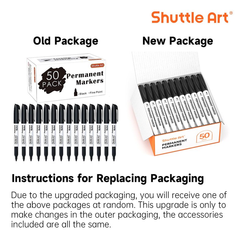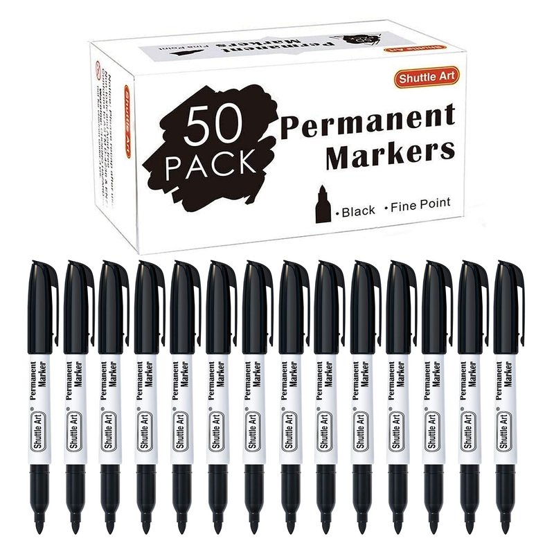 Shuttle Art Permanent Markers, 50 Pack Black Permanent Marker set,Fine Point, Works on Plastic,Wood,Stone,Metal and Glass for Doodling, Marking