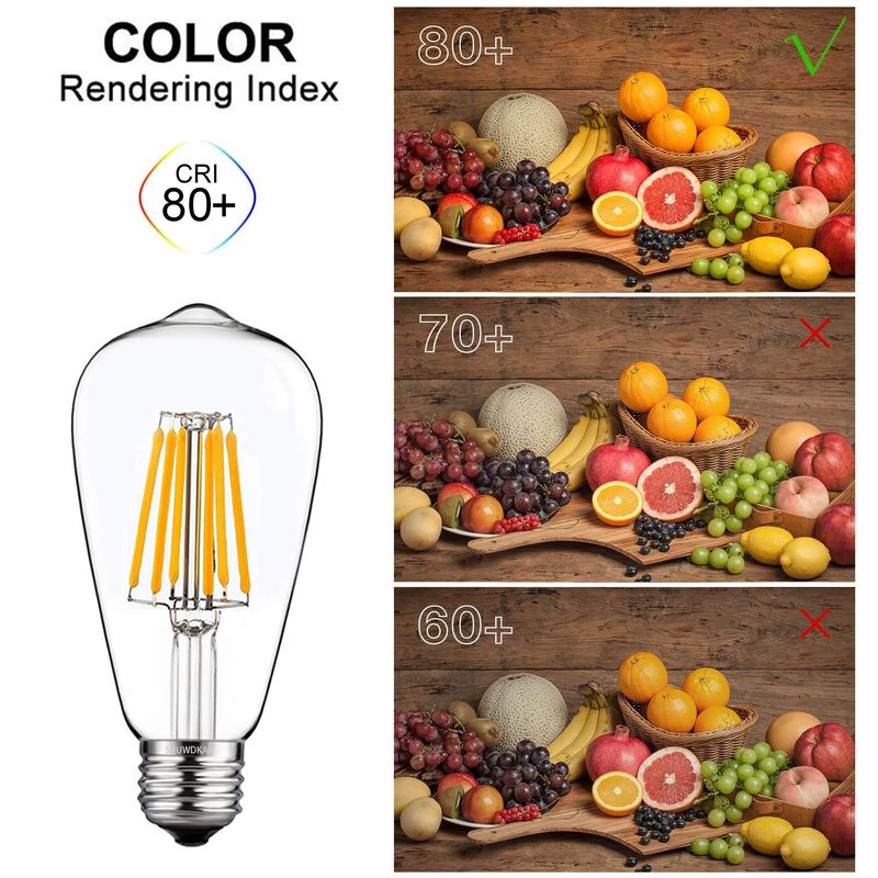 - 【6 Watt For 12V】-6W LED vintage light bulb equivalent 60W incandescent bulb,full brightness is 600Lumens,360 bean angle,CRI>80Ra-Provides vivid colour which restores the true colour of the objects.Over 25000 hours lifespan,provide worry-free 2-year warranty.