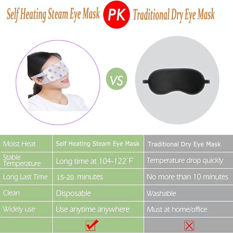 - How the Eye Mask Works: When used, open the package, eye mask and air contact, gradually release the heat, wormwood, and chrysanthemum extract with the help of warm heat to produce subtle comfortable warm steam.