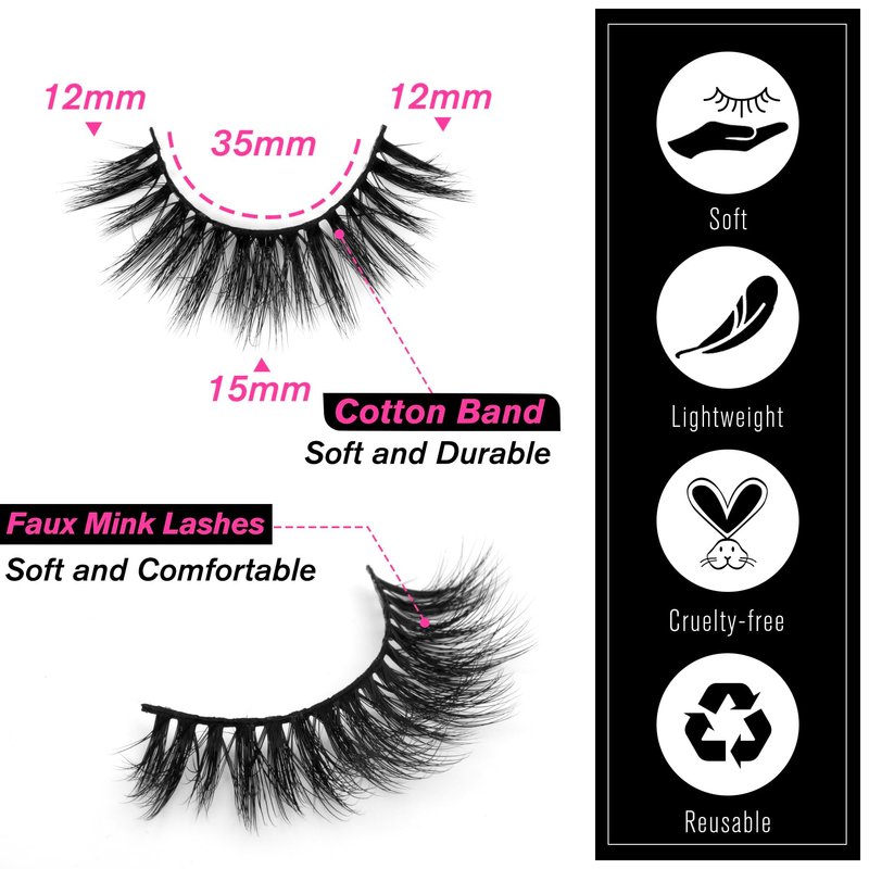 - Beginner Friendly - Strip eyelashes are easy to apply and remove. Even lash beginners can get charming look by themself. The lashes is also reusable with proper care.