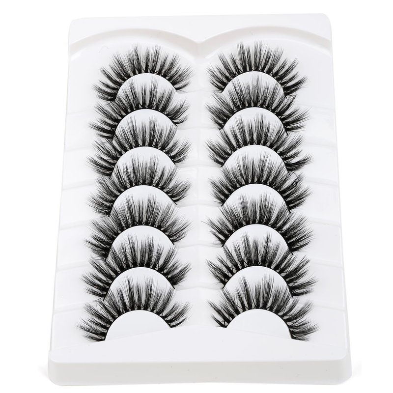 SHUYING False Eyelashes 15mm Faux Mink Lashes with Superfine Band Natural Look Fluffy Eye Lashes Strips Soft Wispy Luxury Volume Fake Eyelash 7 Pairs Pack