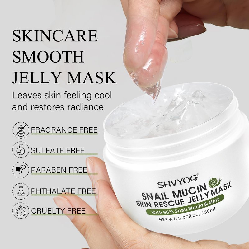 SHVYOG Snail Mucin Mask, Snail Rescue Jelly Face Mask, Snail Mask Hydrating Face Mask with 96% Snail Mucin & Mint Extract, Improving Skin for Blemishes and Dullness