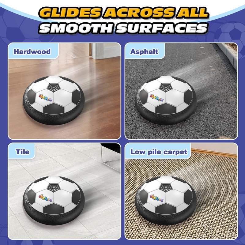 - 【Unique Hover Soccer Toy】Our hover soccer ball is equipped with a high-quality motor, ensuring stable gliding on smooth and flat surfaces like hardwood floors and tiles. The unique hovering function not only stimulates children's curiosity but also enhances their motor skills and hand-eye coordination, making it an ideal choice for indoor play.