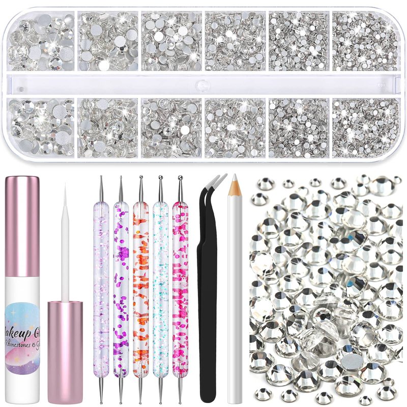- 【Eye Jewels Gems Kit】 Eye rhinestones makeup kit comes with 3600pieces hair gems rhinestones, 1 piece of rhinestone glue for makeup, 1 piece of tweezer, 5 pieces of dotting tools stylus, 1piece of wax picker pencil, This rhinestone set is good for both professional salons and starters to use