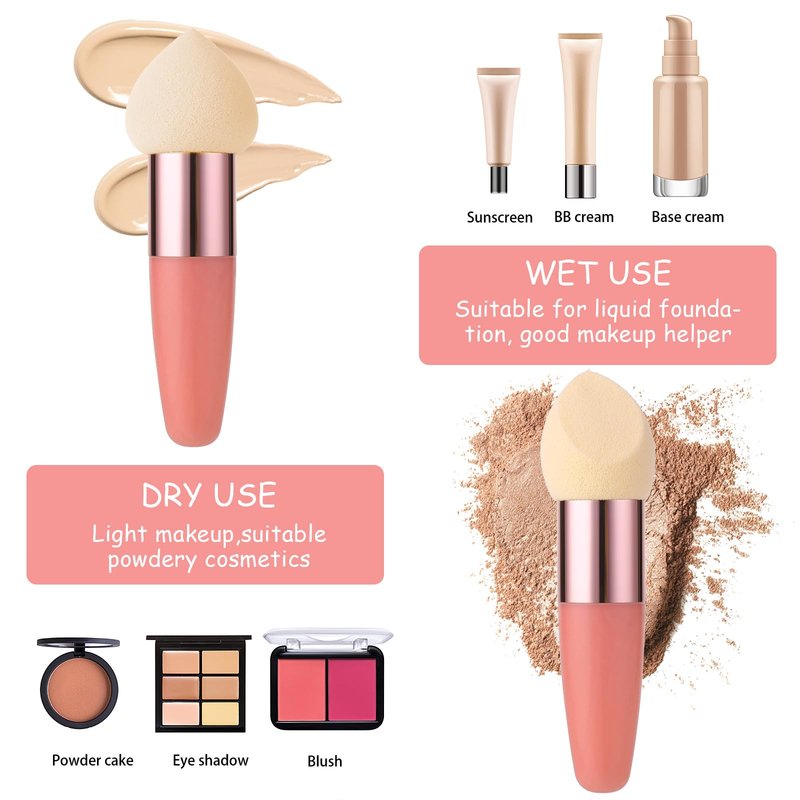 - Cosmetic Sponge With Handle:Mushroom sponge applying make-Up is suitable for liquid foundation, barrier cream, BB cream, sunscreen, and blush for wet use. Dry powder products such as pressed powder, loose powder, eye shadow for dry use