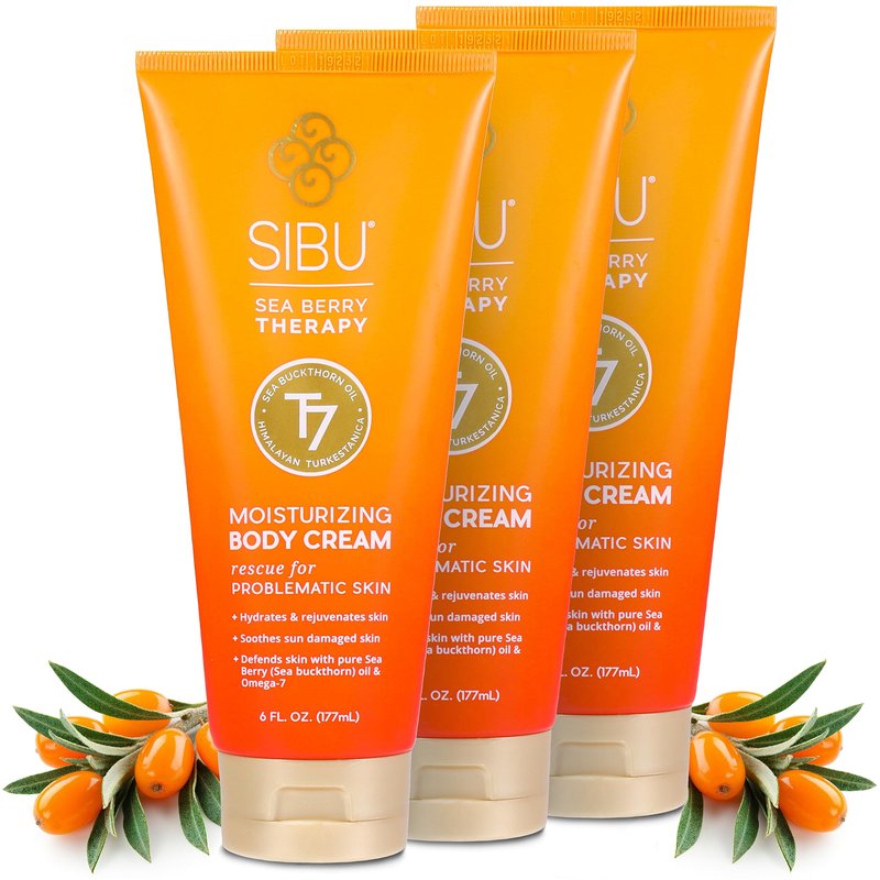 sibu Moisturizing Body Cream, Lotion Made From Premium Himlayan Sea Buckthorn (6oz, 3-pack) – Lightweight & Hydrating Moisturizer That Protects & Repairs Skin