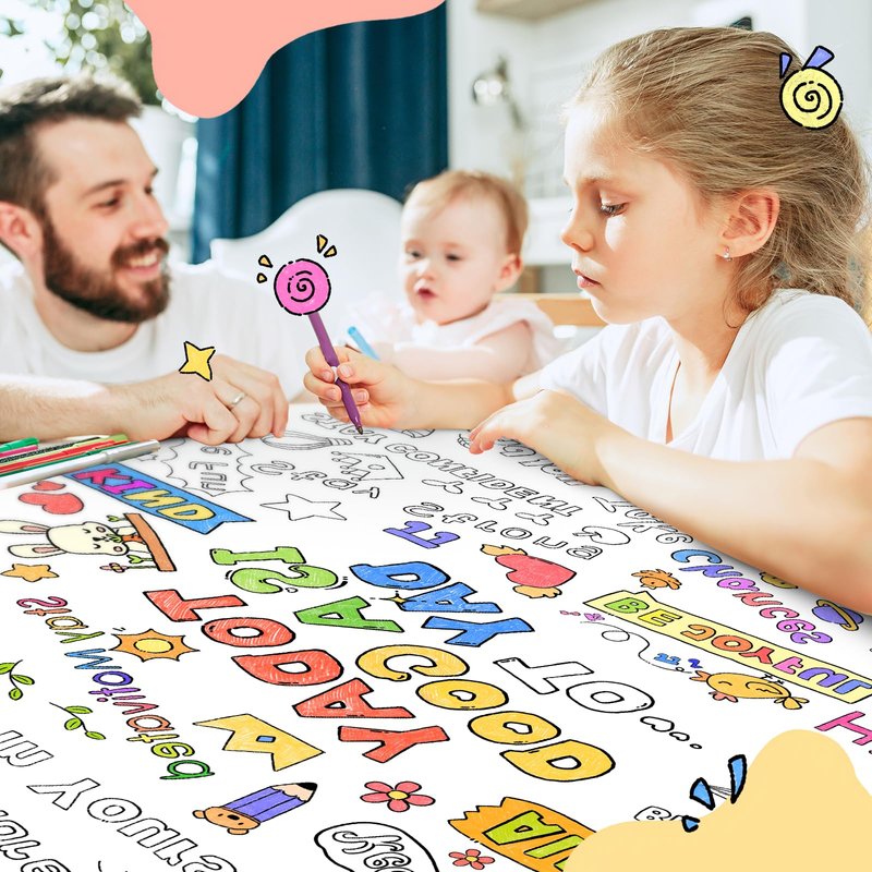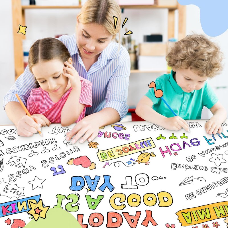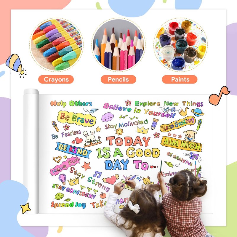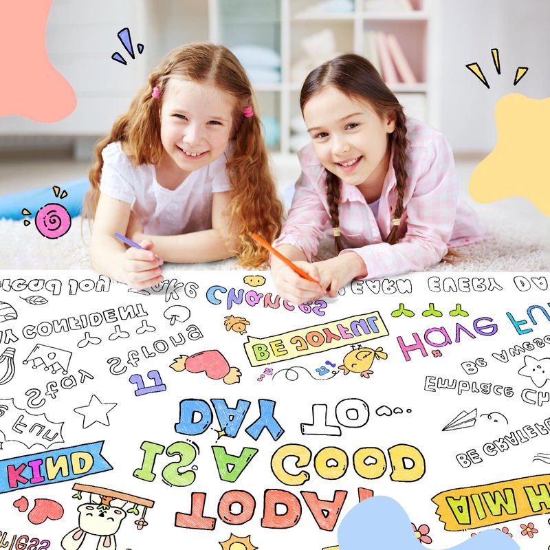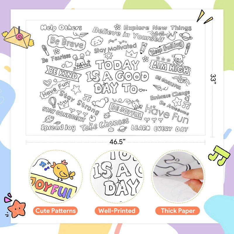 SICOHOME Positive Affirmations Coloring Tablecloth for Kids - 46x33 inch Today is a Good Day to Giant Coloring Poster Art Craft for School Classroom Birthday Activities Party Supplies