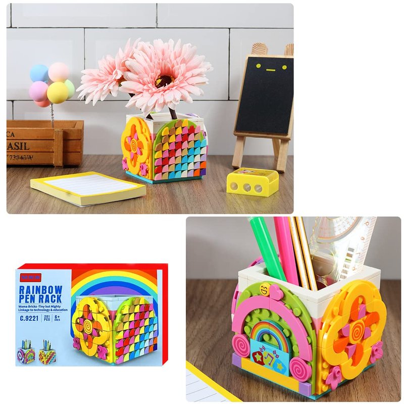 - 【Building Blocks Dots Pencil Holder】-The adorable Rainbow theme pencil holder has different designs on 4 sides, which is very interesting and colorful. It is a very beautiful Desk decoration box~ The pen organizer box has 201pcs colorful tiles, Suitable for girls and boys age 6+. The bricks are compatible with LEGO.
