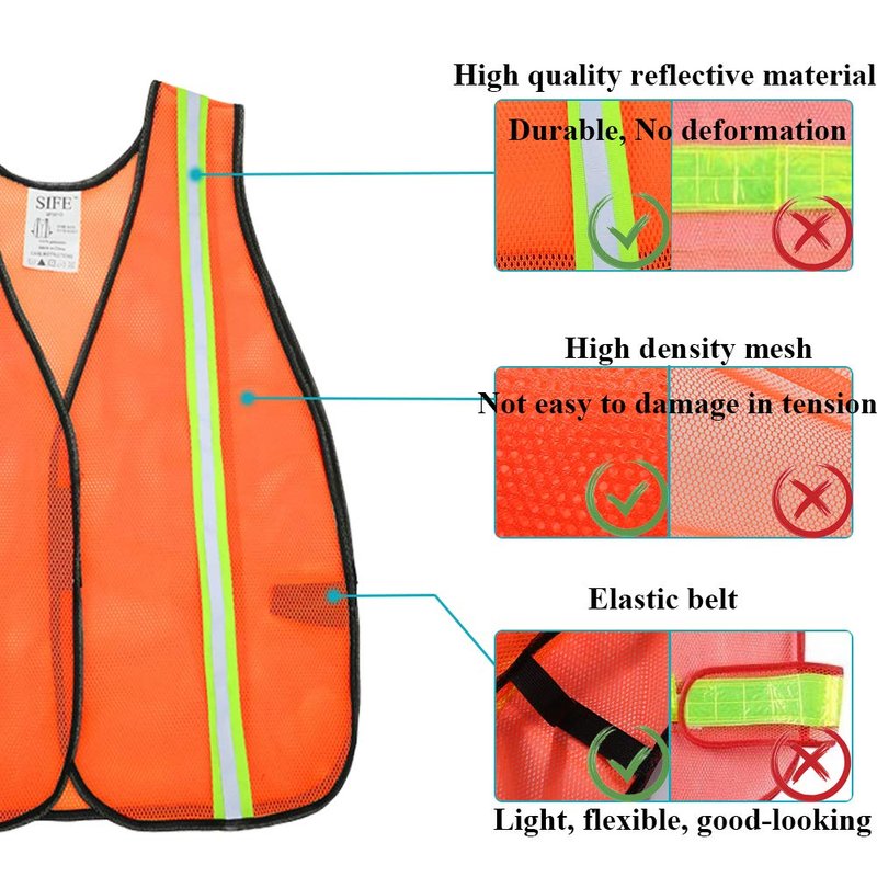 SIFE 10 Pack High Visibility Reflective Safety Vest,Made from Breathable and Neon Orange Mesh Fabric,light weight for Man and Woman