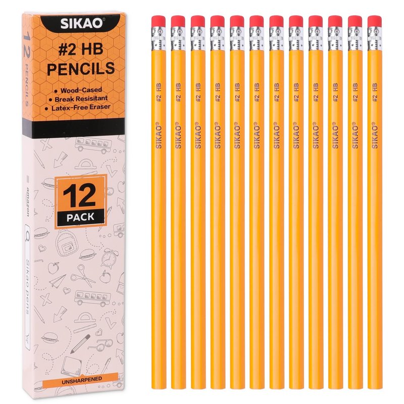 Sikao 12 Pack Pencils #2 Wood Pencils Bulk for Classroom, Wooden Pencils, Number 2 Pencils, No 2 Pencils with Erasers, Yellow HB Pencil for Kids Sketching Drawing School Teacher Supplies