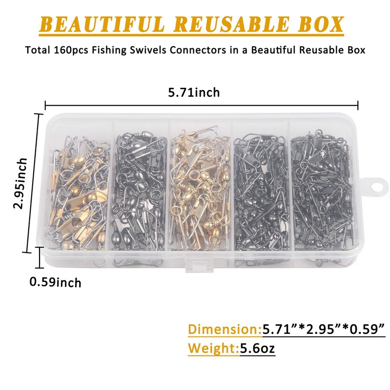 160pcs Barrel Swivel with Safety Snap Kit -Strong, Dependable and Easy Way to Change Your Lure,Weight or Leader